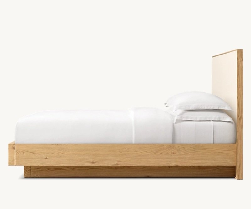 Arco Bed combines a solid wooden base with a soft upholstered headboard for balanced comfort and durability. Its clean lines make it suitable for modern, minimalist, and natural-style bedrooms. Available in multiple color options and different mattress sizes. Mattress is not included.