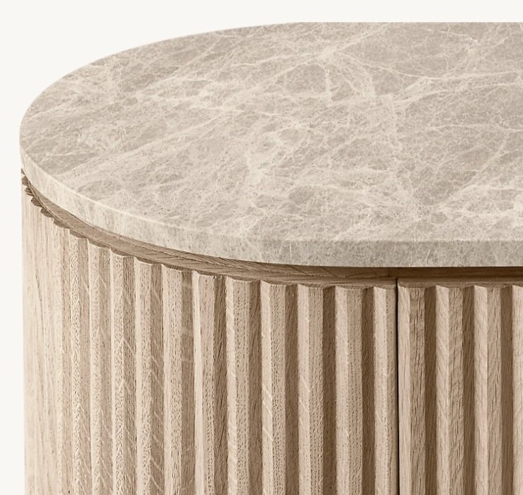The Avenor Sideboard is designed to be both functional storage and a visual statement. With its curved form, fluted wooden doors, and natural stone top, it brings architectural beauty into everyday living.