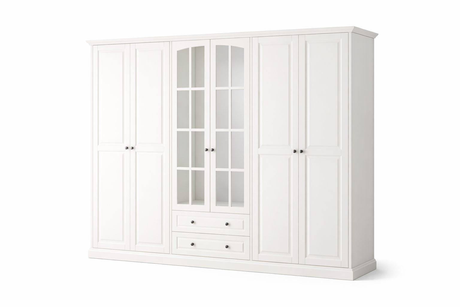 The Bella Wardrobe is a timeless classic, designed for elegance and functionality. Featuring six hinged doors, with central mirrored panels and base drawers, this wardrobe brings both practical storage and refined charm to your bedroom.