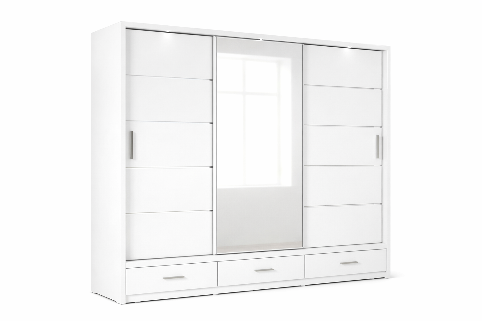 Its clean white finish, mirrored door, and minimalist sliding system make it a perfect fit for modern, luxury, and contemporary interiors.