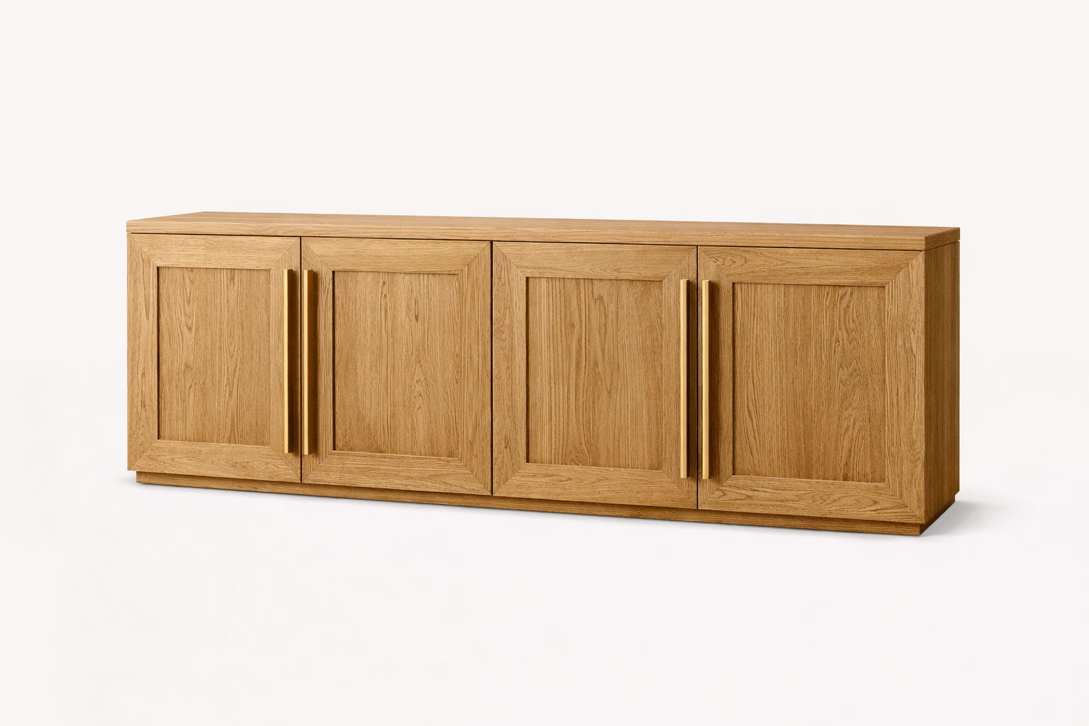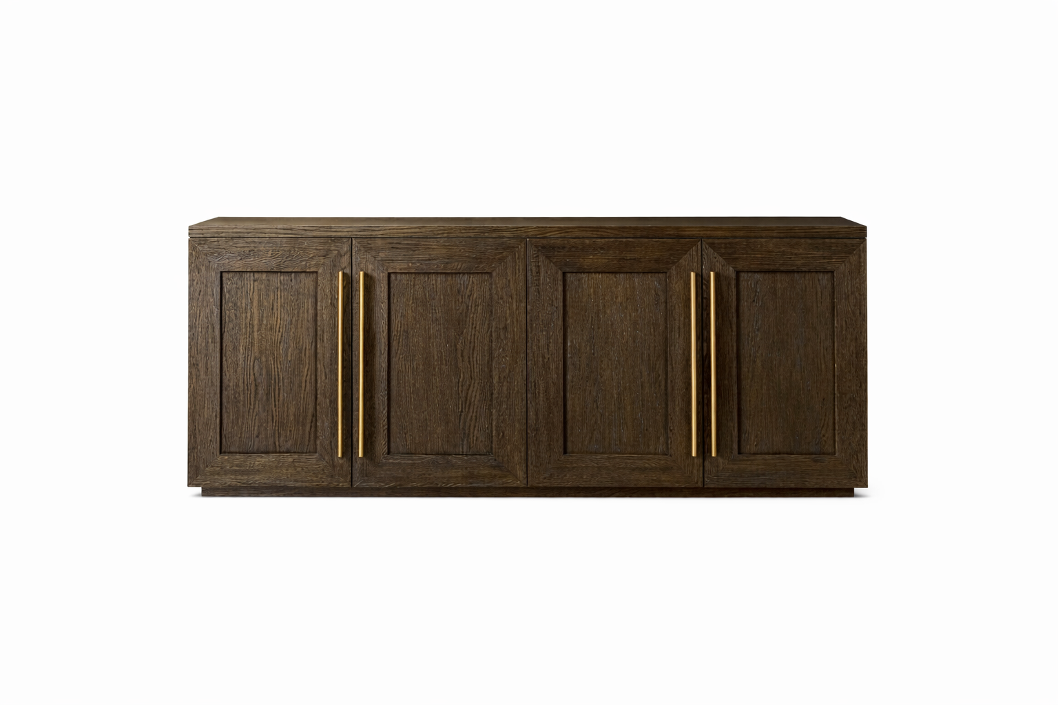 Canyon Sideboard is designed with a bold wooden structure and framed panel doors that give it a strong, timeless presence. The long vertical handles add a modern contrast to the rich wood finish. Inside, it offers spacious hidden storage, making it perfect for dining rooms, living areas, and large open spaces.