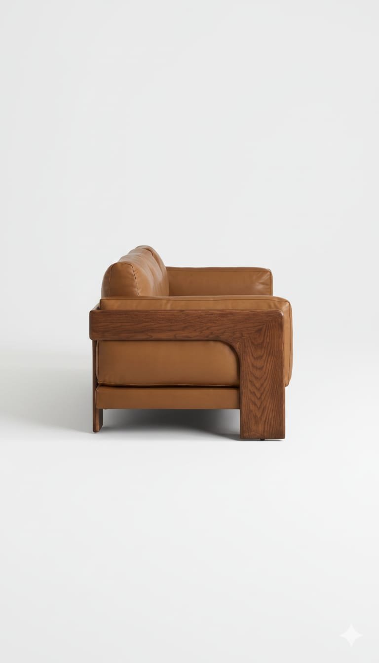 The CAYN Leather Sofa is a bold contemporary statement piece that blends solid wood craftsmanship with rich leather upholstery. Designed with exposed wooden arms and a grounded architectural frame, this sofa delivers a powerful visual presence while offering deep, everyday comfort.