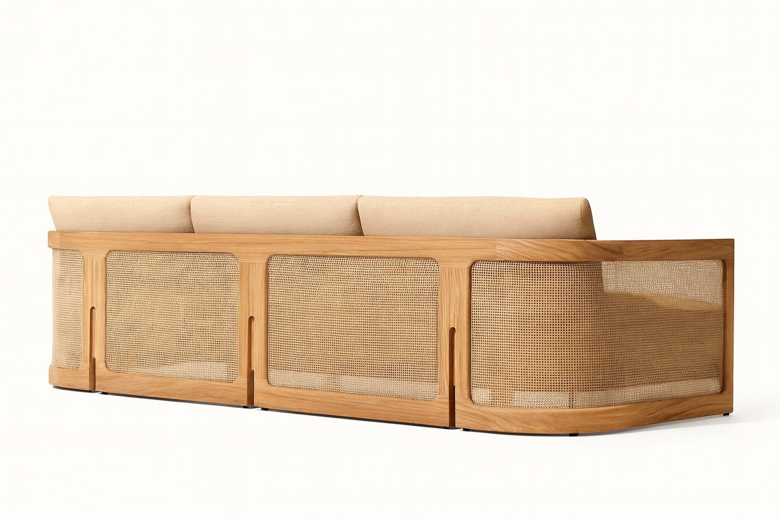 Its solid wood frame ensures durability and an organic look, while the natural cane accents bring warmth, texture, and timeless charm. Upholstered in weather-resistant outdoor fabric, the Classudo Sofa is designed to withstand everyday use, sun, and humidity, making it equally suitable for indoor and outdoor spaces.