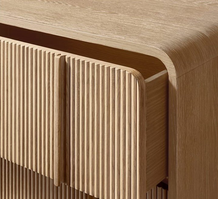 Elegant fluted wood dresser with rounded edges — a timeless storage piece that pairs beautifully with the Cloud Nine Bed collection.