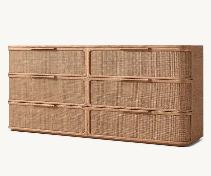The Cocoon Dresser embodies timeless craftsmanship with a modern organic edge. Expertly handcrafted from solid wood and detailed with natural cane fronts, this six-drawer dresser brings both warmth and sophistication to any bedroom or living space. Its softly curved frame and integrated handles create a seamless silhouette that’s as functional as it is elegant.