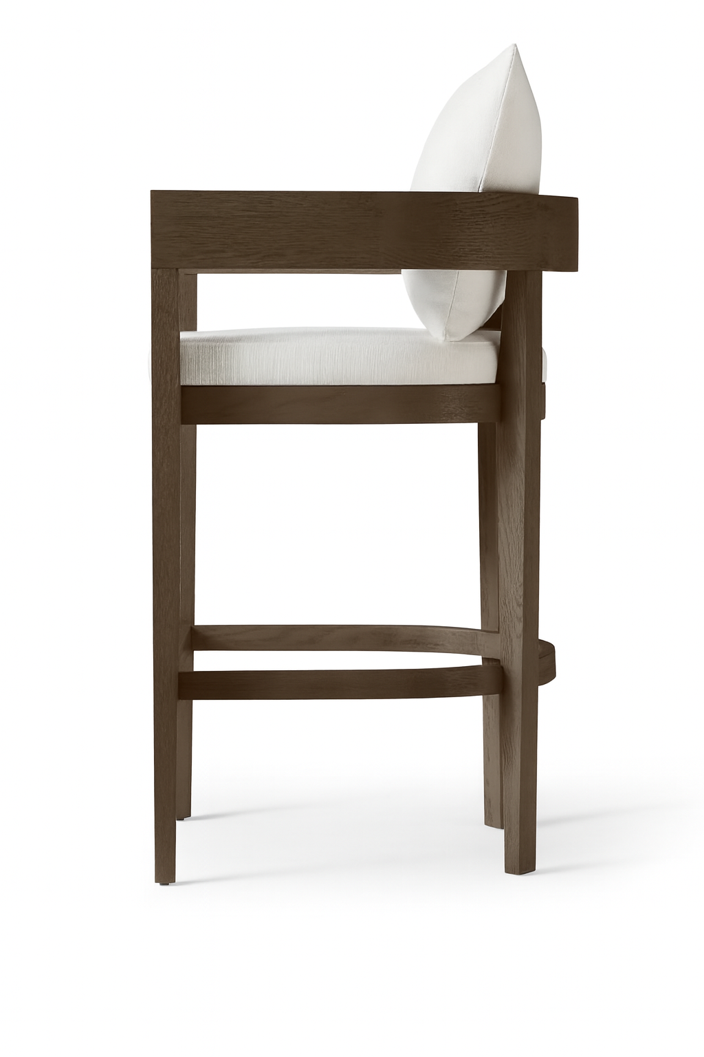 Designed with a gently curved backrest, sleek arm details, and a plush upholstered seat, this bar chair adds effortless sophistication to home bars, kitchen islands, and contemporary cafés.
