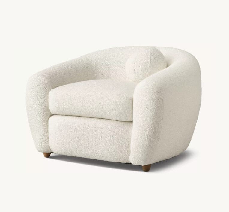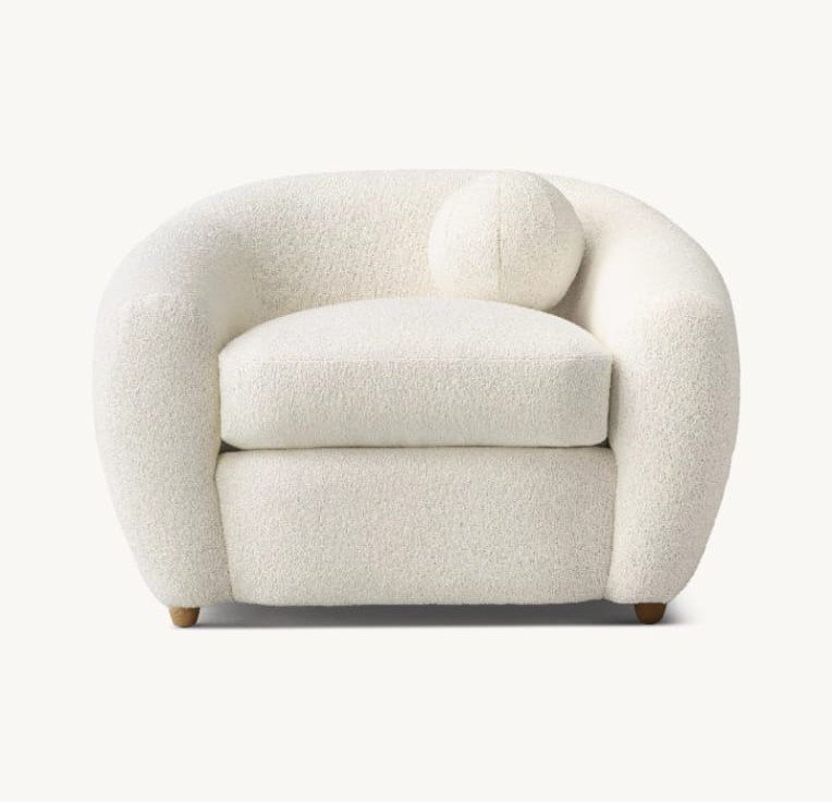 A fully upholstered lounge chair with deep seating and a sculptural rounded form, designed for ultimate comfort.