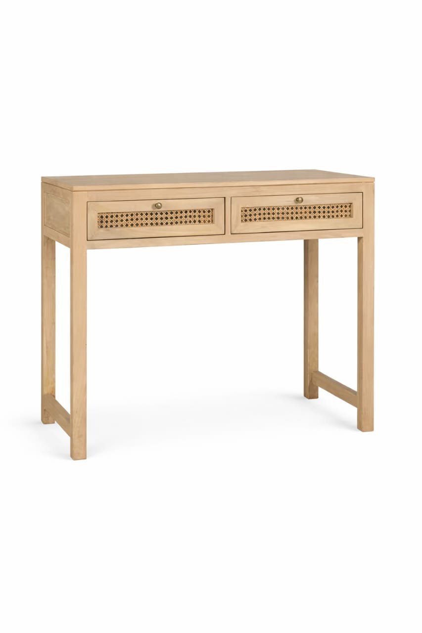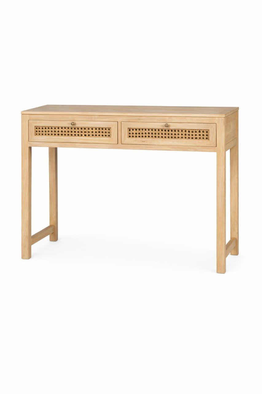 The Elza Console Table is designed for light, calm spaces that need both function and charm. With its slim frame, clean lines, and woven cane drawer panels, Elza blends natural materials with modern simplicity.