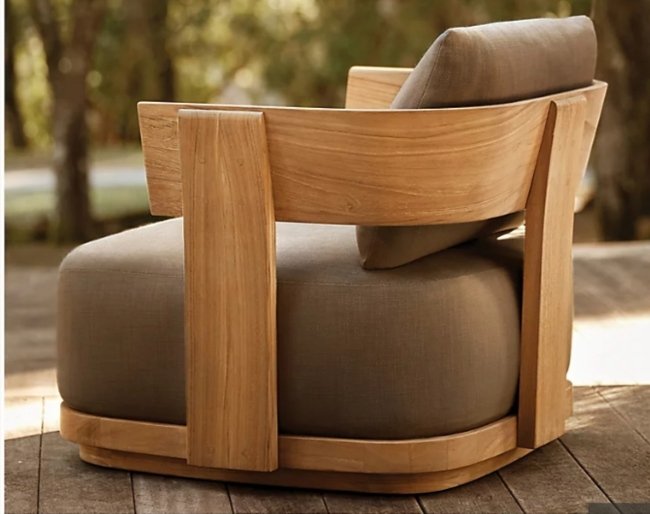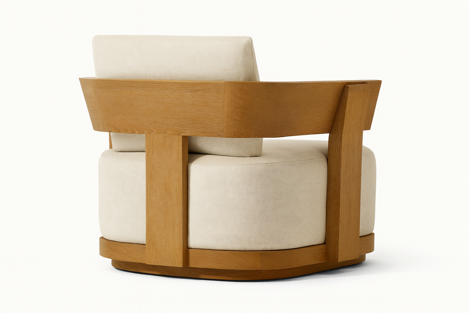 A bold, sculptural lounge chair crafted from massive wood and upholstered in premium outdoor fabric. The Empire Lounge Chair brings architectural elegance and exceptional comfort to indoor and outdoor spaces alike.