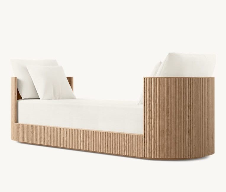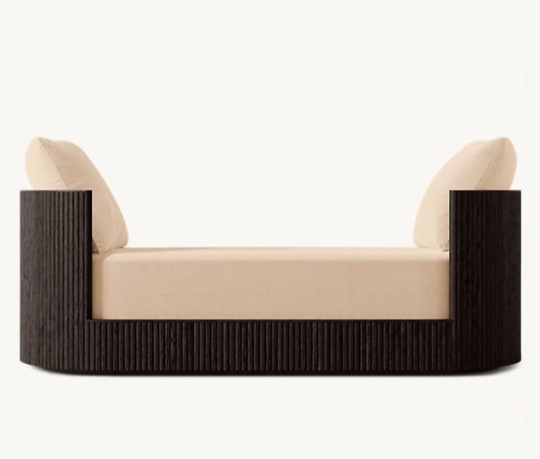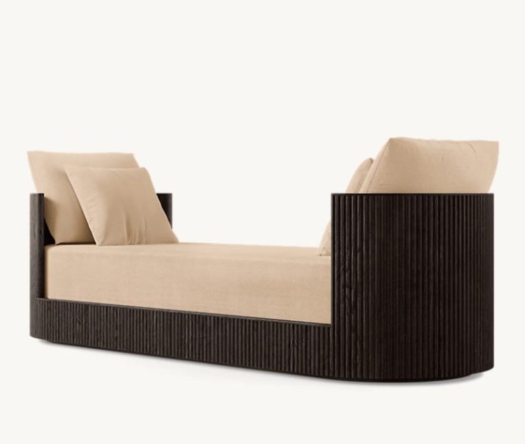 Solid engraved wood daybed with carved detailing. Slim design, versatile use, customizable finishes.