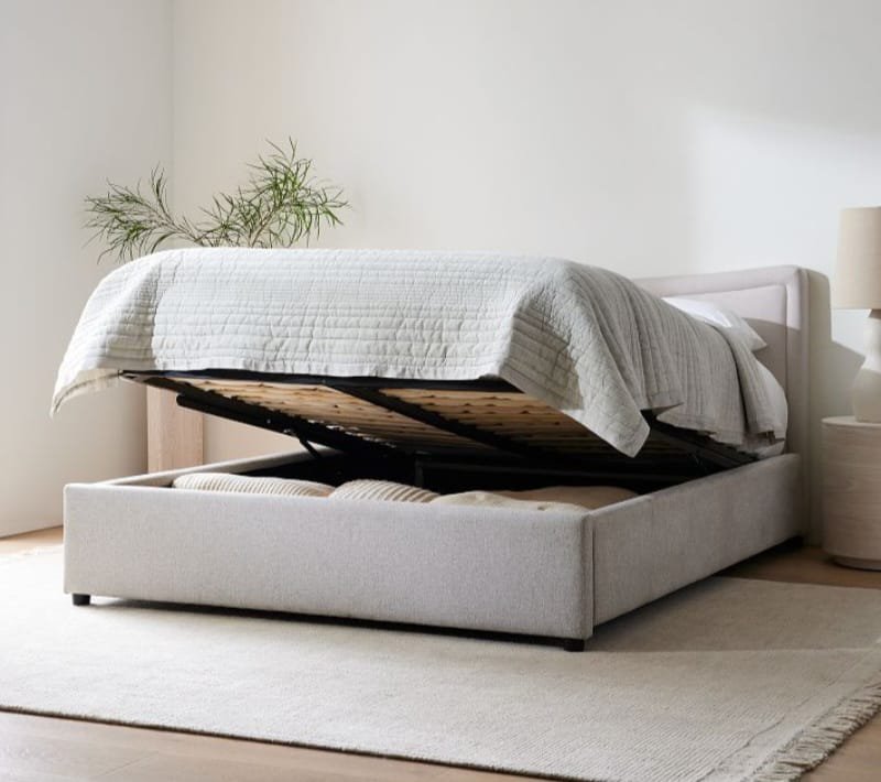 Modern comfort meets smart storage with the Florence Bed. Upholstered in elegant linen fabric, this bed features a sleek hydraulic lift system that reveals a spacious under-bed storage compartment — perfect for keeping your home clutter-free. Crafted with a solid Zan wood frame for lasting support.