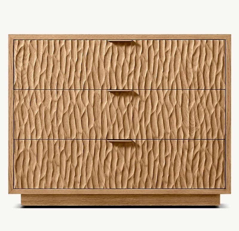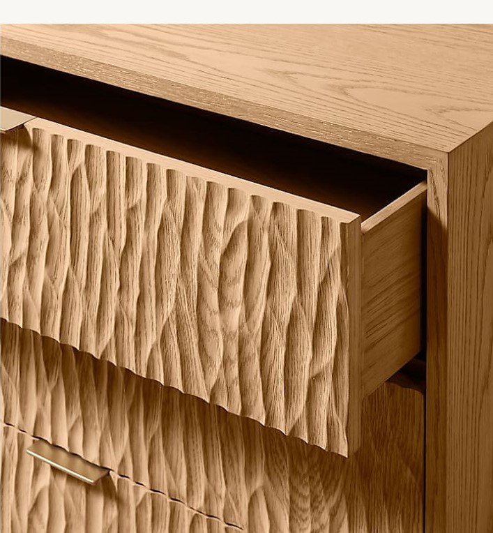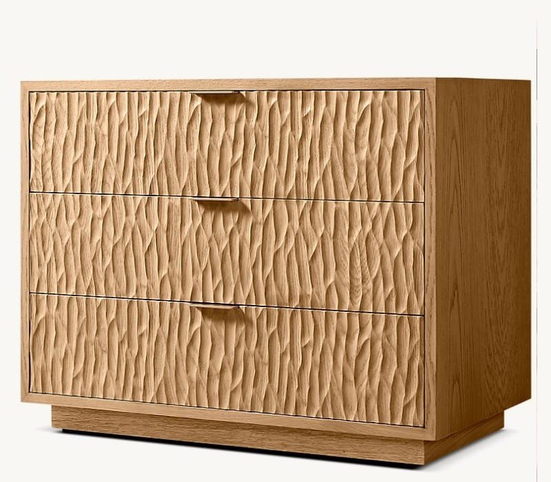 The Dream Escape Nightstand is crafted to complement the elegance of the Dream Escape Bed, combining premium craftsmanship with a modern design aesthetic. Built from solid Zan wood and oak veneer, it features a unique textured drawer front that adds depth, character, and a natural artistic finish.