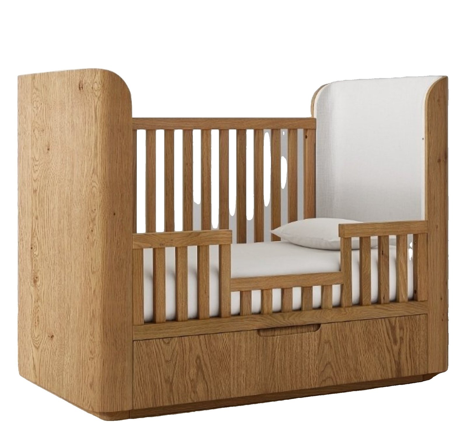 Your child’s safety is our priority. The bed boasts rounded edges and a sturdy frame, offering peace of mind as your baby nestles in for the night. With its timeless design and practical features, this baby bed with storage drawer is a must-have for modern parents.