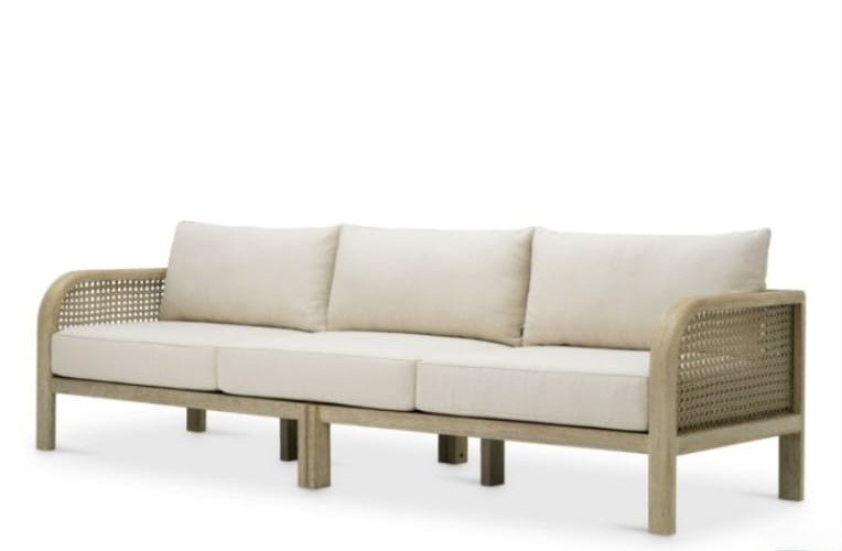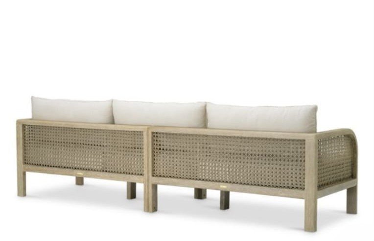 Built on a solid Zan wood frame, the sofa features woven natural cane panels that add texture, breathability, and artisanal character. The seat and back cushions are upholstered in linen fabric, offering a soft, breathable, and naturally comfortable seating experience.