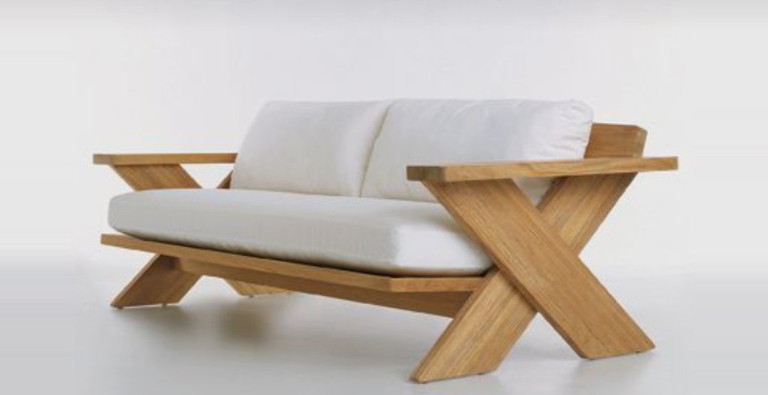 The Kiss Cross Sofa is a sculptural centerpiece that fuses architectural geometry with relaxed comfort. Handcrafted from massive solid wood, its striking X-shaped base and arm design gives the piece a strong visual identity while maintaining timeless elegance.