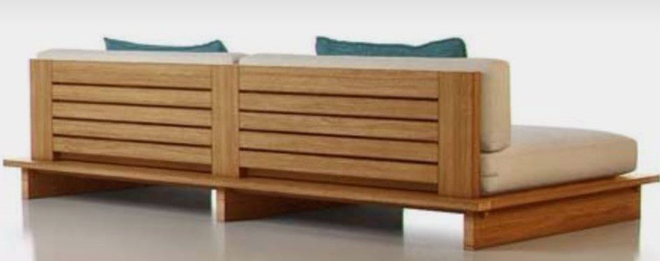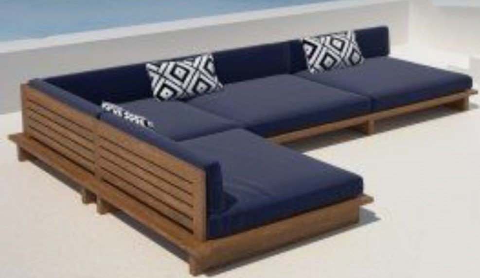 The Lagoon Sectional Sofa embodies modern coastal elegance with its low-profile silhouette and bold linear wooden base. Crafted from massive wood, available in Mosky wood, Pitch Pine, or Teak wood under request, this sectional is built for durability and timeless appeal. Upholstered with premium outdoor fabric and deep, comfortable cushions, it offers the perfect balance of architectural structure and laid-back comfort.