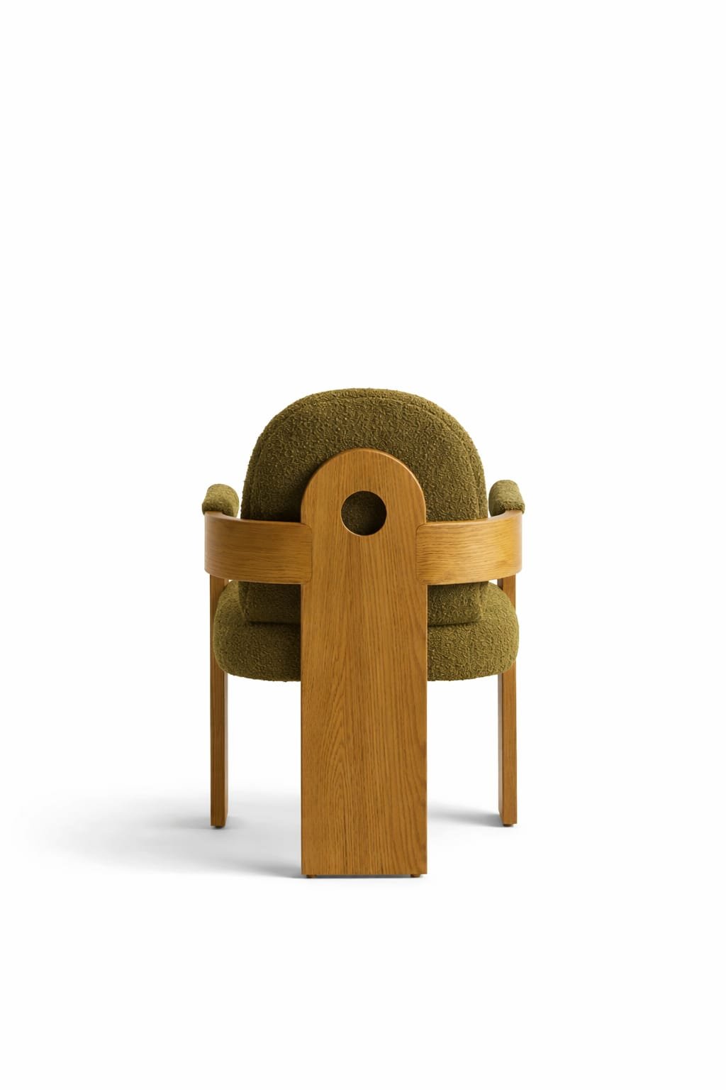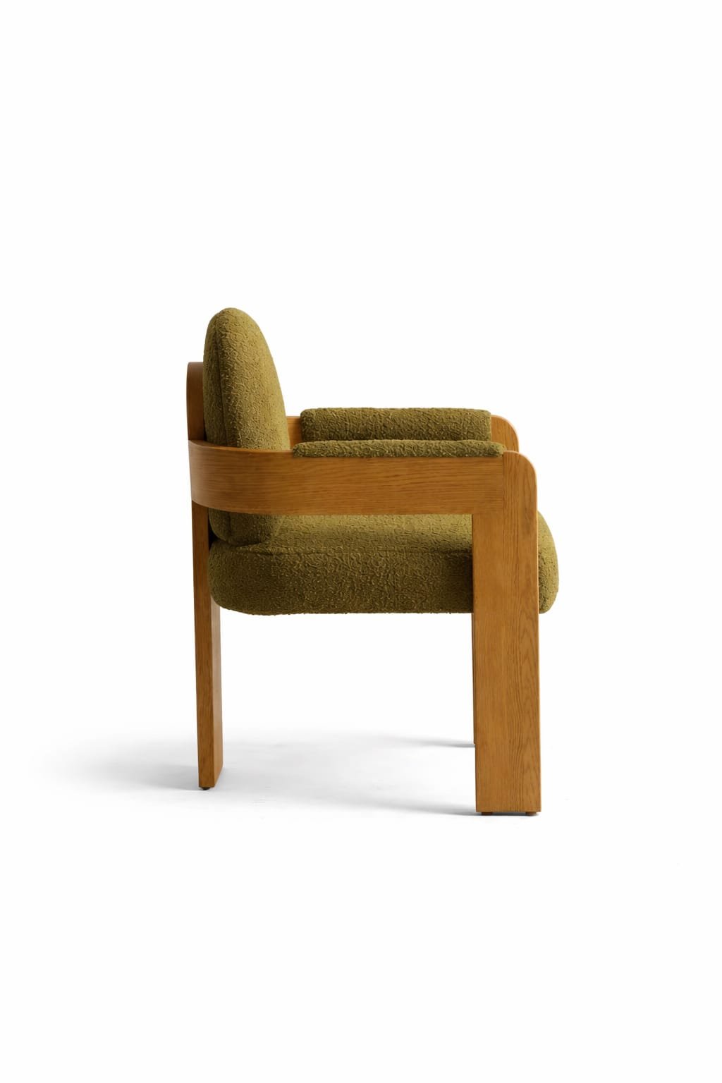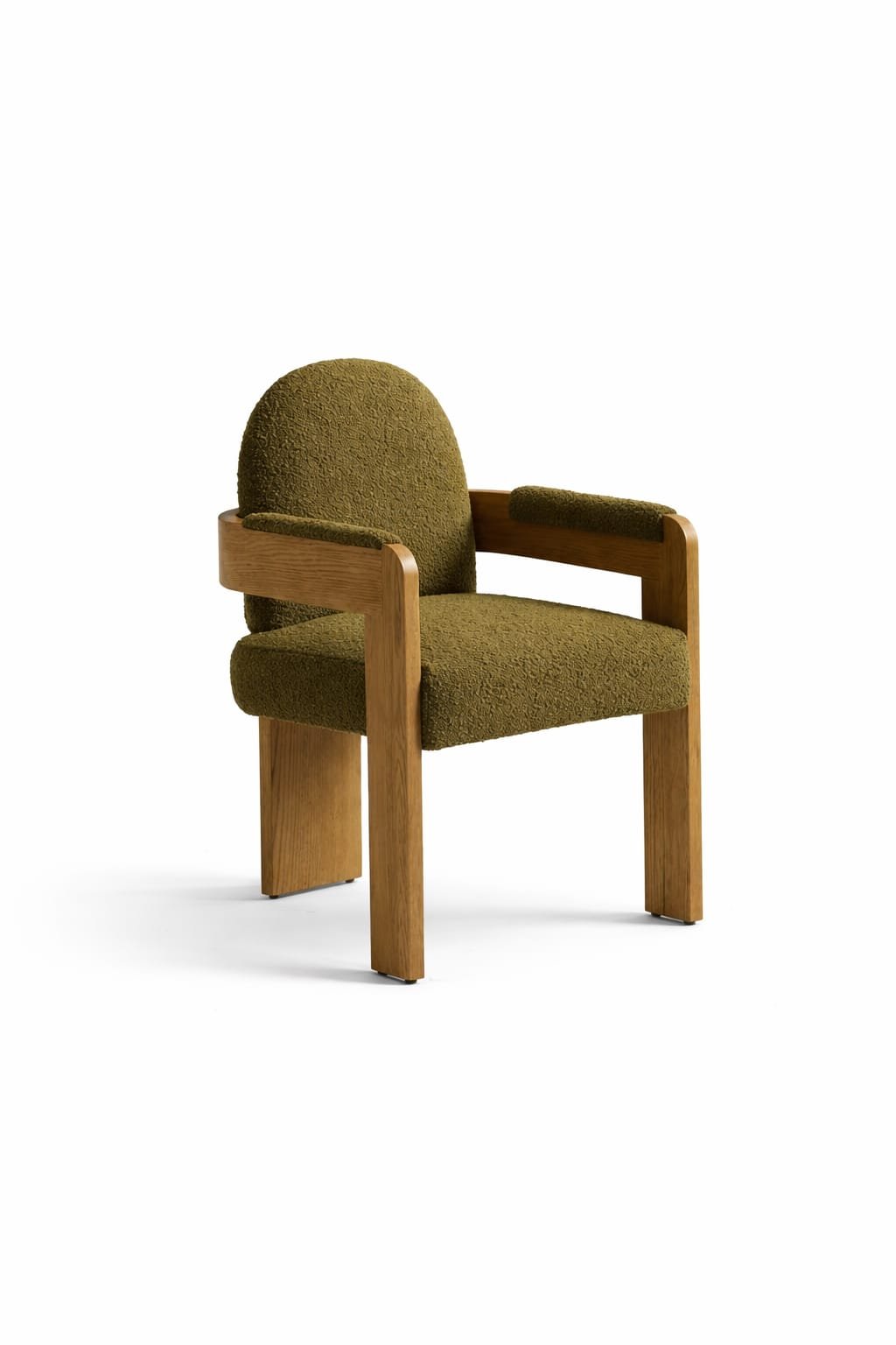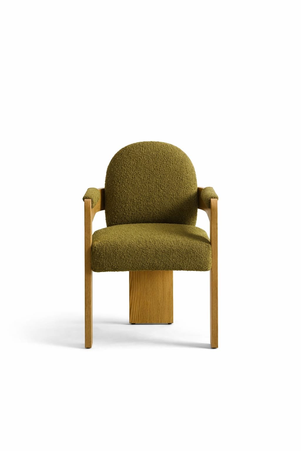 The upholstered seat and backrest offer comfortable support for daily use, while the strong Zanwood structure provides stability and durability. The wide wooden arms add both visual balance and functional comfort.