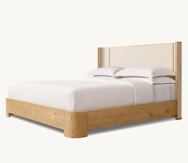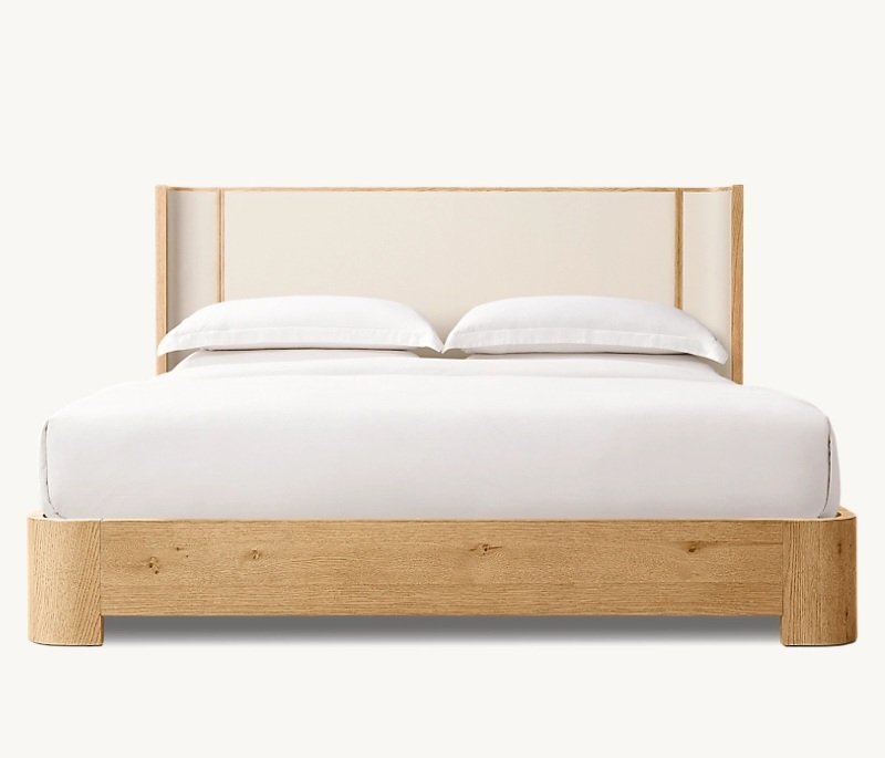 Lexham Upholstered Bed combines a solid wooden structure with a soft fabric-upholstered headboard for added comfort. Designed for modern and natural-style bedrooms. Available in multiple colors and sizes. Mattress is not included.