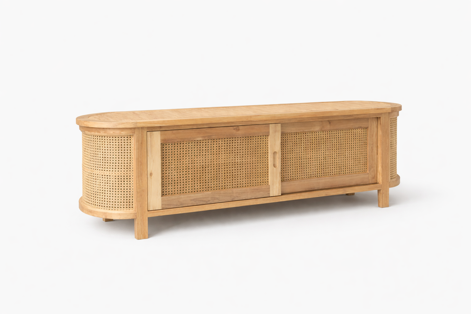 Featuring a stunning natural oak veneer, this block board exudes elegance and sophistication. The warm tones of the oak veneer beautifully complement the beech wood and natural cane, bringing an artistic touch to any interior space.