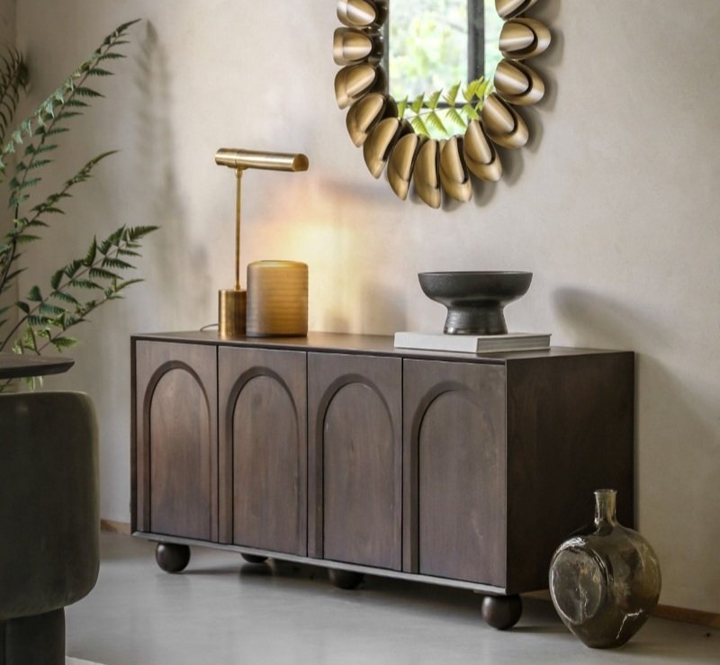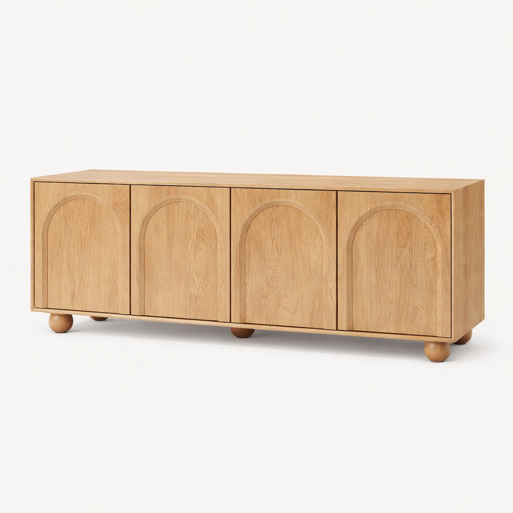 The Mela Sideboard is a modern wooden sideboard in Egypt designed for spaces that need storage with strong design presence. Made from solid natural wood, the Mela Sideboard features clean lines with elegant arched door detailing that adds character without feeling heavy.