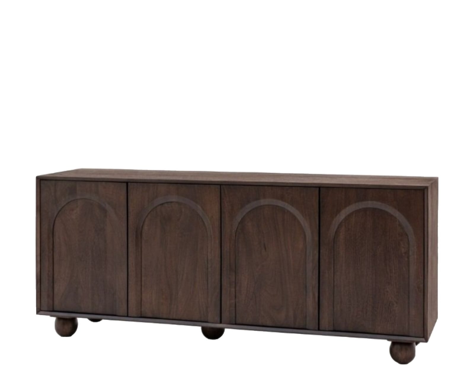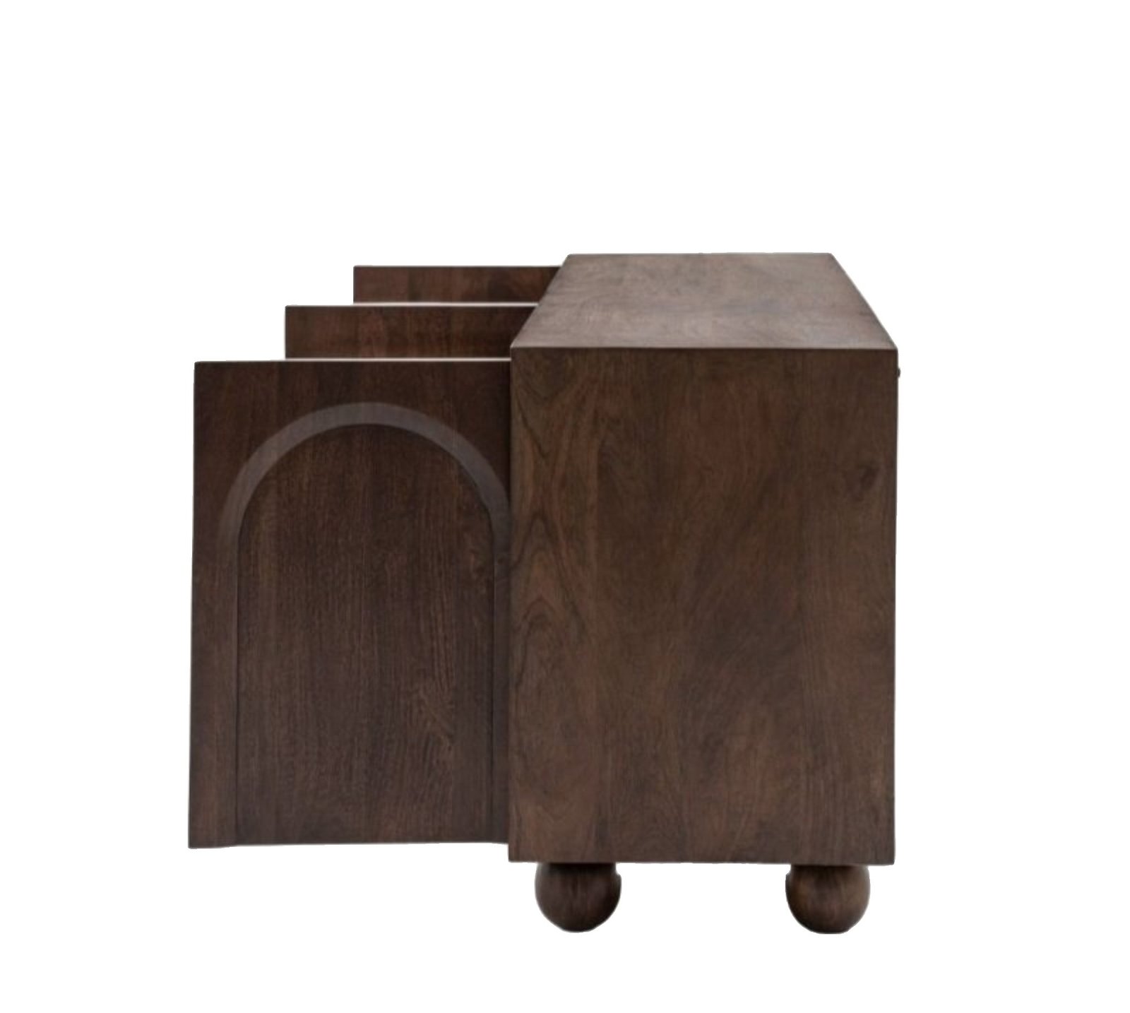 Mela Sideboard is a wooden storage sideboard in Egypt with modern arched doors and spacious interior for living and dining spaces.