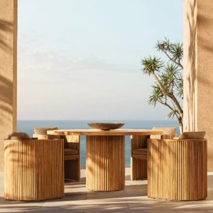 Its clean silhouette and vertical detailing create a calm, architectural presence that works beautifully in Japandi, organic minimalist, and contemporary interiors. Perfect for dining rooms, breakfast nooks, villas, and covered terraces, the Michigan Round Dining Table is designed to anchor gatherings with understated luxury and natural character.