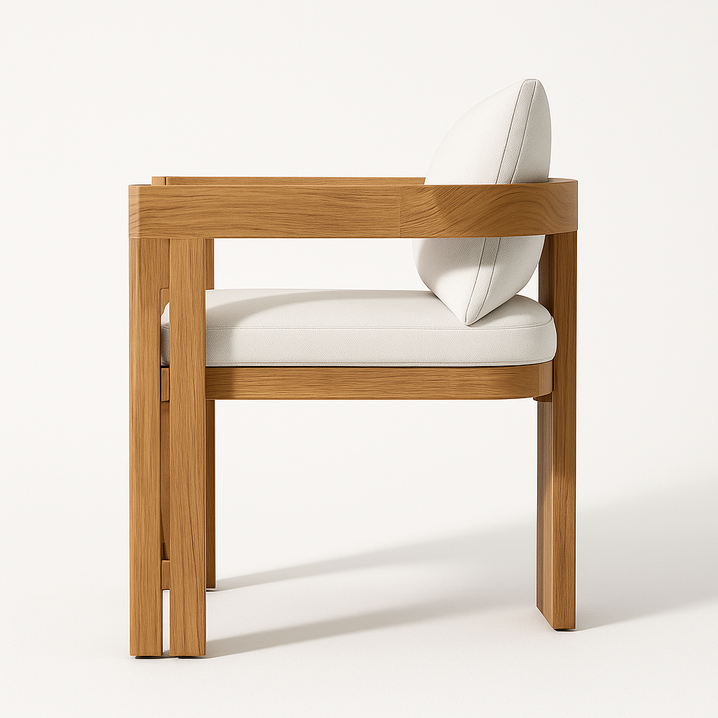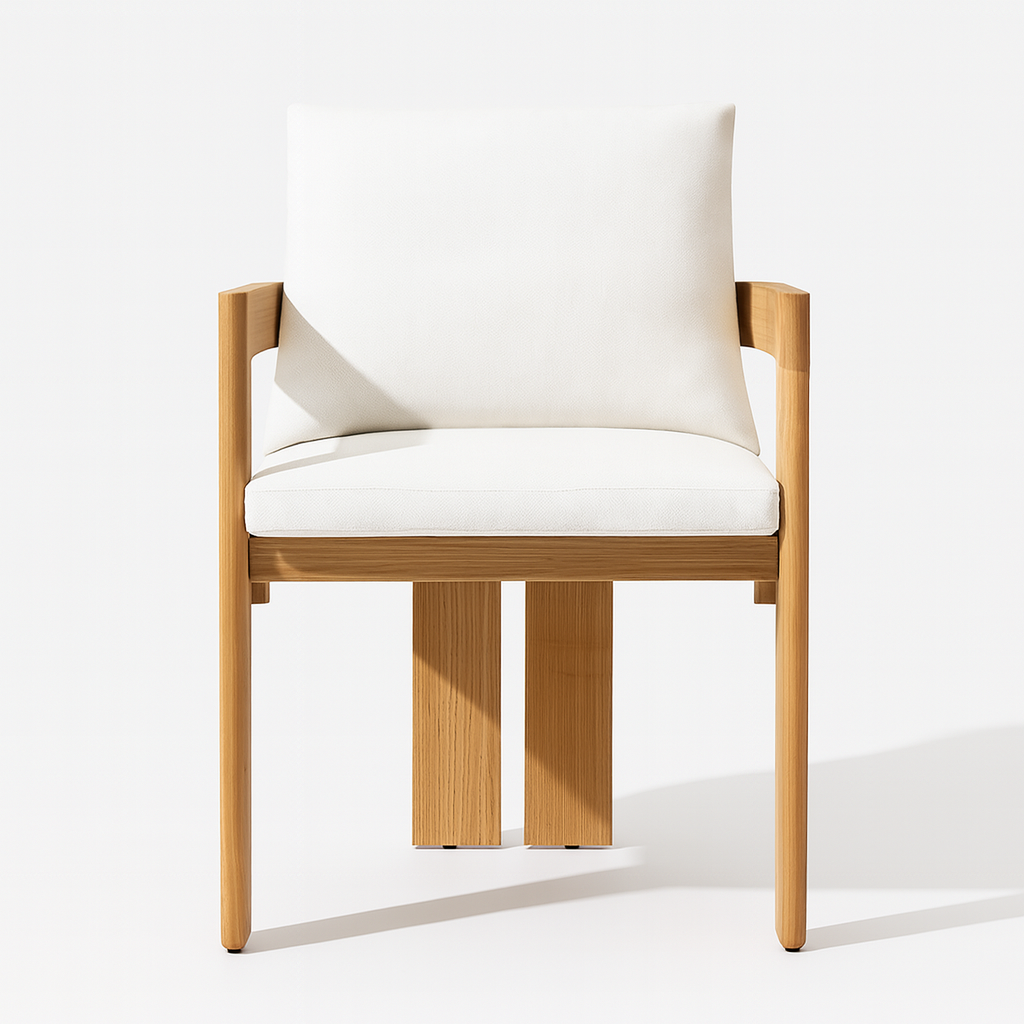 The Oxford Dining Chair is a modern handcrafted piece designed with a clean architectural silhouette and a solid natural wood frame. Available in Mosky or Pitch Pine wood, with Teak offered upon request, the chair delivers durability, stability, and a warm organic look suitable for indoor dining spaces or shaded outdoor areas. Upholstered in outdoor-grade performance fabric, the cushions resist fading, humidity, and daily wear, offering long-term comfort and practicality.