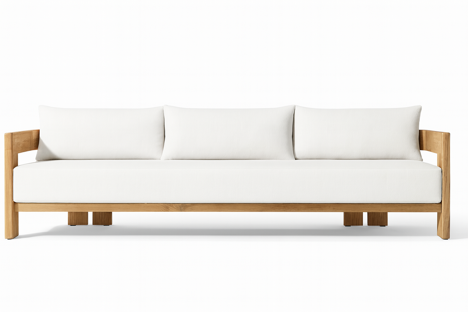 Built with exceptional craftsmanship, the Oxford Sofa brings a refined, natural aesthetic suitable for Japandi, Organic Minimalist, Mediterranean, Modern Contemporary, and Outdoor Luxury interiors. Its wide seating base and supportive back pillows make it ideal for everyday lounging or guest seating.