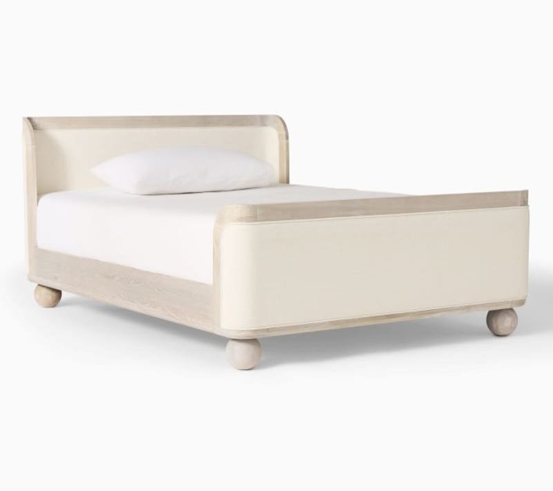 Paris Bed Egypt – A luxurious upholstered bed frame featuring smooth rounded wood edges and a minimalist silhouette. Perfect for modern and organic interiors, offering both comfort and craftsmanship.
