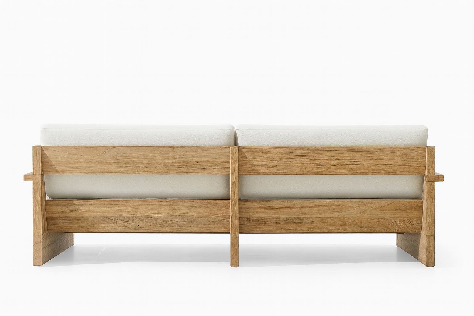 Upholstered in premium performance fabric, the sofa delivers both softness and strength — ideal for daily use in living rooms, lounges, or modern villas. Each piece is meticulously handcrafted, offering the choice of Mosky or Pitch Pine wood, with Teak wood available upon request for a more luxurious coastal finish.
