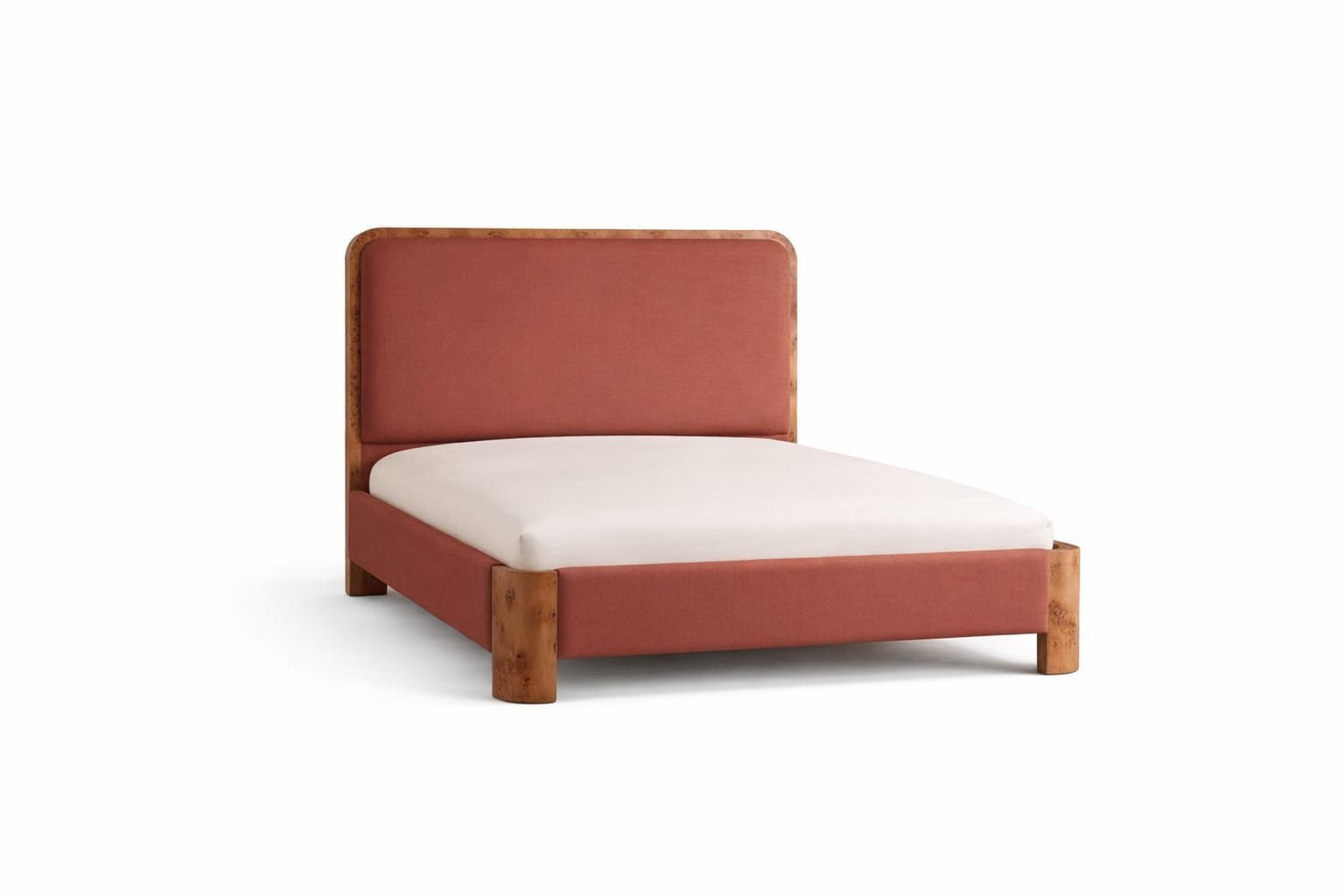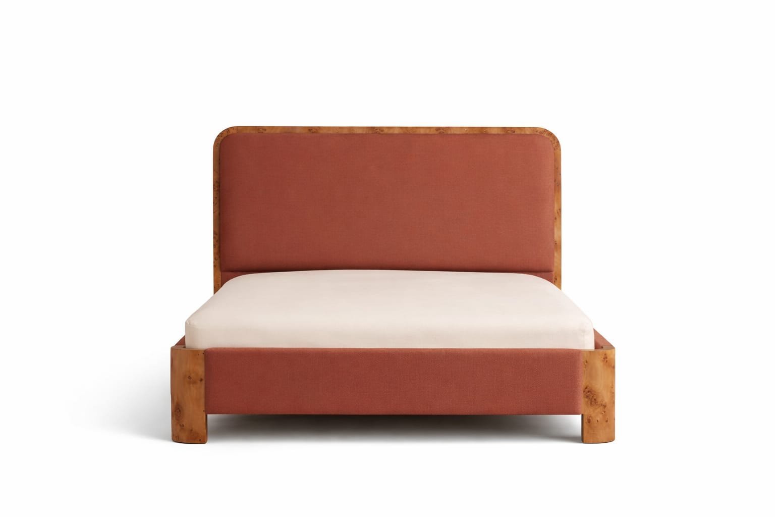Rinoa upholstered bed in terracotta fabric with solid wood frame on white background