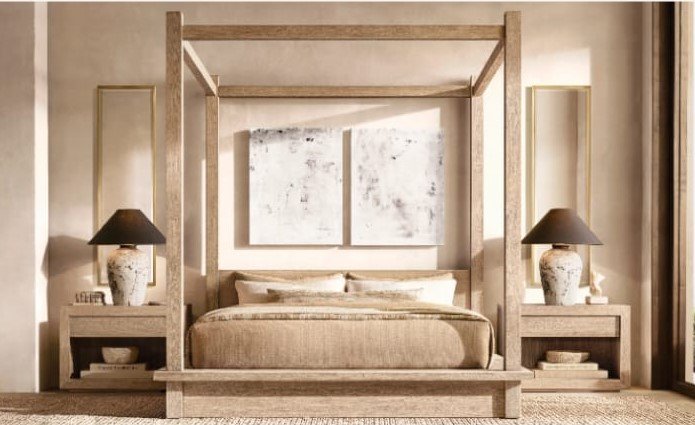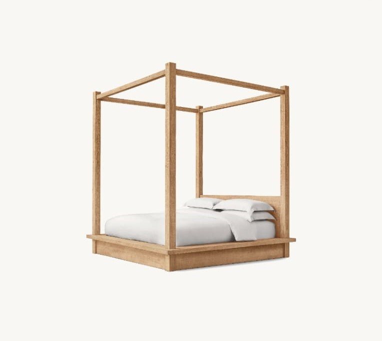 The Santiago Canopy Bed combines architectural elegance with timeless craftsmanship. Designed with clean, structured lines and a minimalist silhouette, this bed brings a serene yet powerful presence to any bedroom. The solid frame and platform base are crafted from Zan wood and Blockboard wood with natural veneer, finished to a premium standard that highlights the wood’s authentic texture.