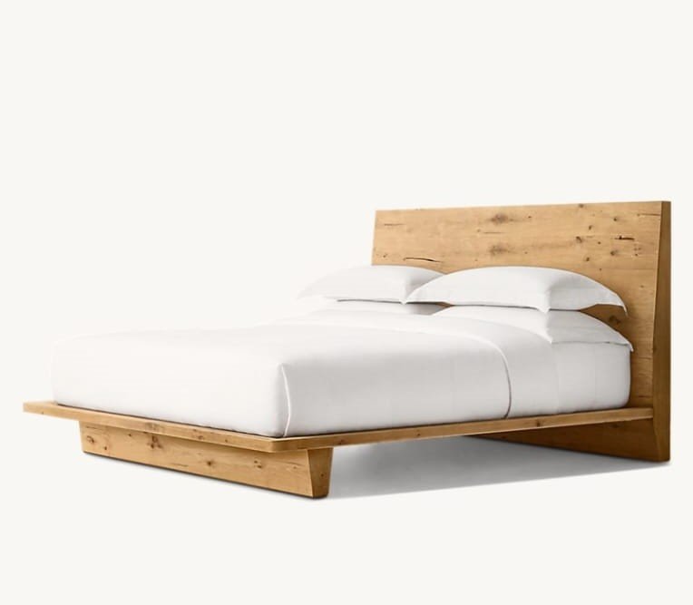 Sleek solid wood platform bed with angled headboard and clean lines. Available in 5 sizes. A perfect balance of modern design and natural warmth.