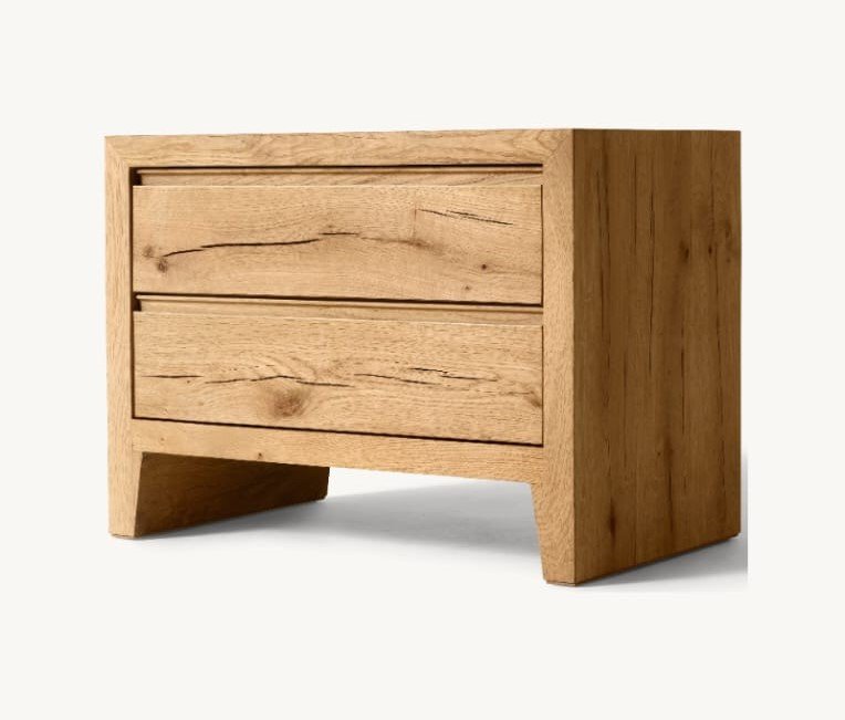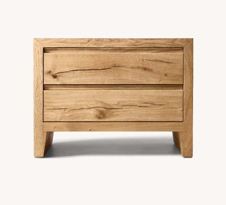 Solid wood modern nightstand with 2 drawers, clean lines, and natural wood grain. Generous depth and height for functional, timeless design.